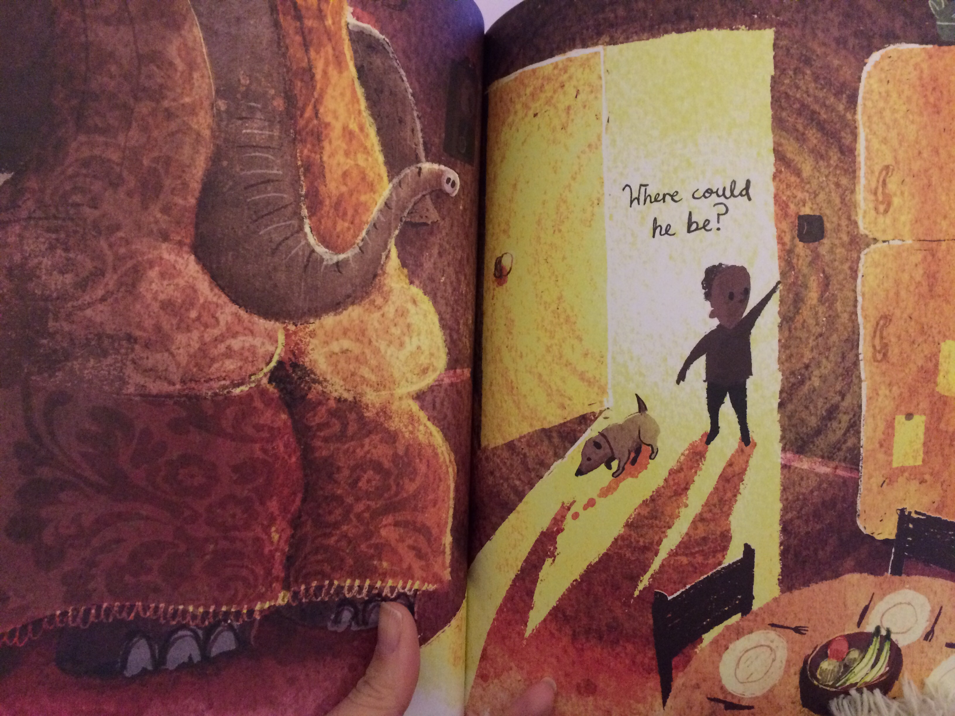 Barrow illustrates the entire story with wonderfully soft watercolors that avoid being washed out and instead seem to shimmer with vibrancy. Each page is rich with depth and detail and sure to make you or your little one chuckle as you see the new ways Elephant mischievously hides himself. I also enjoyed being able to tell more about the boy’s family from pictures and to see the turtle who appears at the end of the story hidden in a few pages before hand. It’s an incredible book and would be a fabulous edition to anyone’s library.