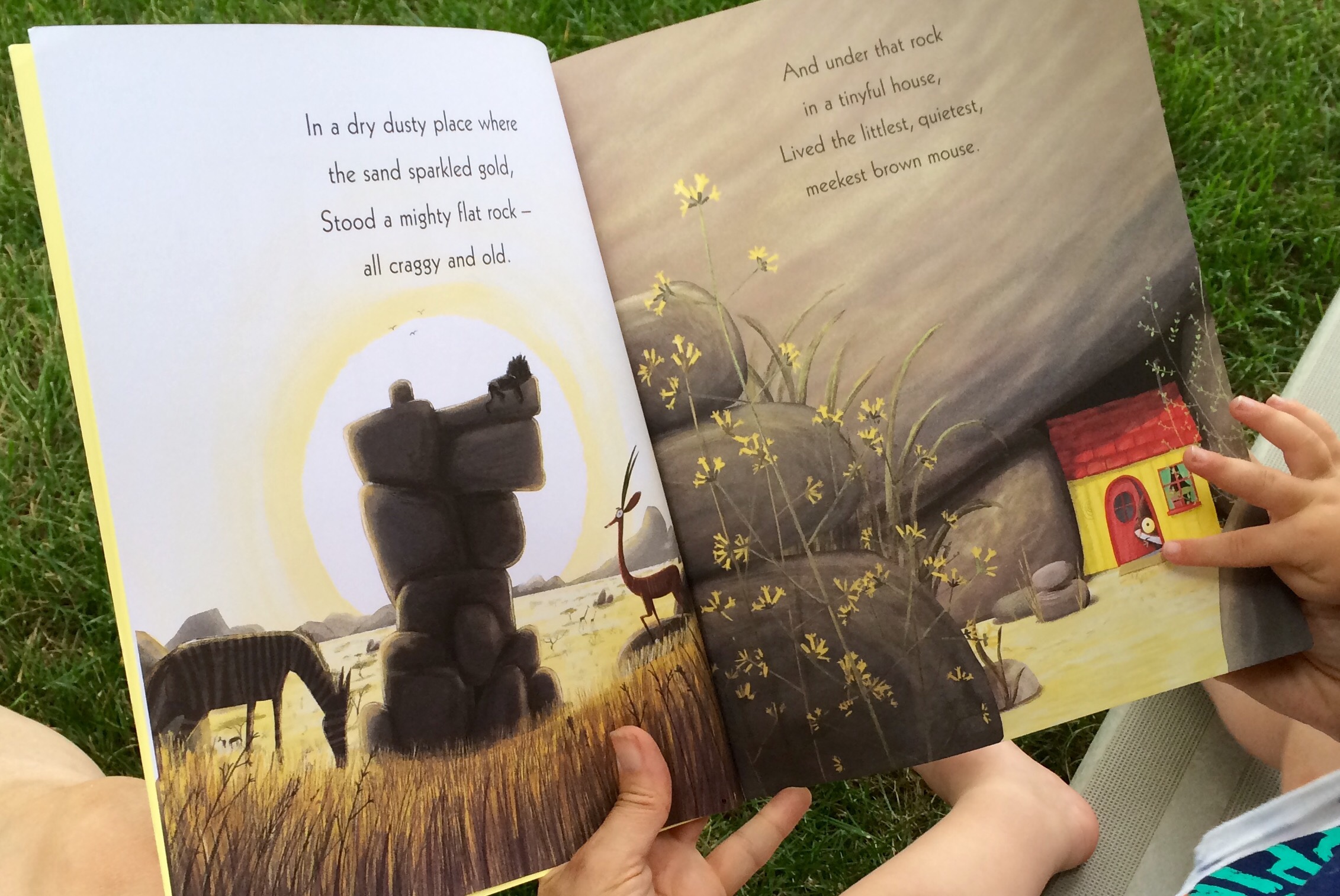 Jim Field does a great job illustrating these points and successfully reiterating the messages through his pictures. We see how small and timid Mouse is, from the breaks in his mouse tail from being trod on to the almost quivering of his ears. In contrast, Lion’s displayed with bright, bold and exciting scenes. All the supporting animals have really been captured by Field and their own unique, individuality. The story and the pictures play off of each other perfectly and made me so pleased to have purchased this for our home library.
