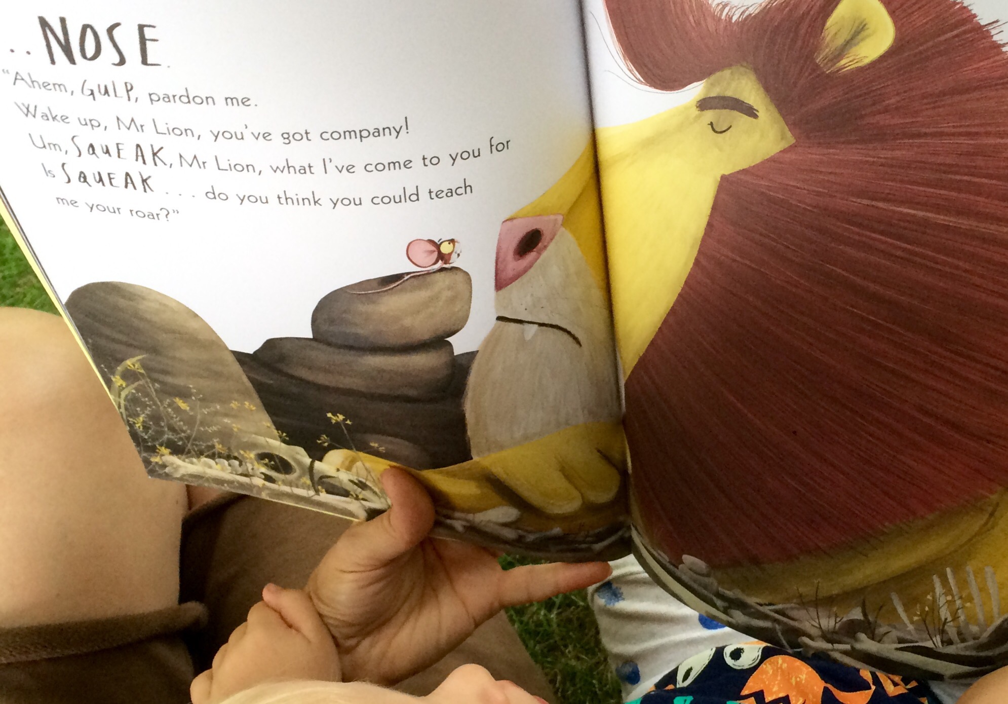 - The animals all have very readable expressions. When reading it we make them say little things like: “Ohh! He’s very impressive.” or “Please put my down, Mr. Lion.”